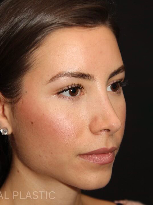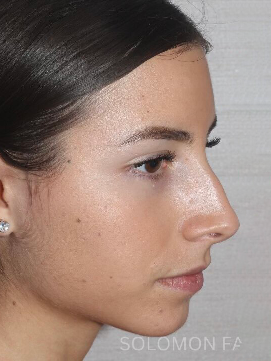 Before and after open rhinoplasty with Dr. Philip Solomon of Toronto. Our patient is a beautiful young woman whose goal was to achieve a very feminine nasal shape. She wanted a shorter nasal bridge, less projection of the nasal tip and a slight slope for a nasal shape that would carry her into later years. She was thrilled with the outcome as it healed beautifully over the course of one year. Before and after rhinoplasty pictures with Dr. Philip Solomon are 6 weeks apart.