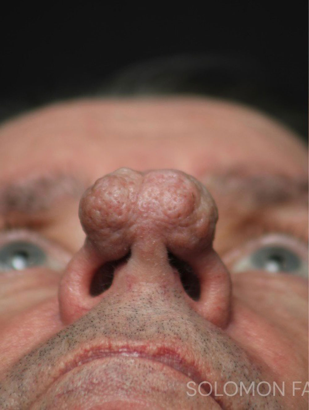 Before and After Rhinophyma with C02 Laser Resurfacing with Dr. Philip Solomon of Toronto. This patient is a 70 year old male came to us with serious concerns about his nasal shape and genetic condition. He was experiencing a severe, late-stage form of rosacea that causes sebaceous glands in the skin of the nose to enlarge, leading to a thickened, red and bumpy appearance. We were able to address the extreme skin growth with C02 Laser Resurfacing to reshape his nasal appearance. Before and after Rhinophyma with C02 Laser Resurfacing pictures with Dr. Philip Solomon are 4 weeks apart.
