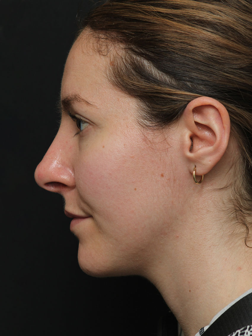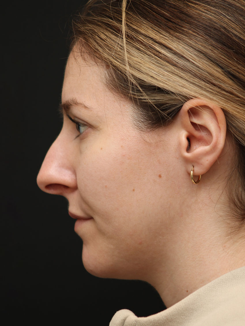 This woman underwent a tip plasty procedure to subtly enhance the appearance of her nose. Refinement of the nasal tip is generally achieved by trimming the tip cartilage, and in some cases long lasting sutures are used to assist in reshaping and refining the tip.