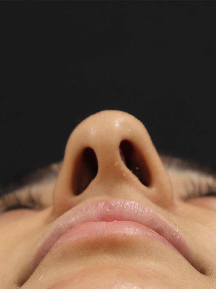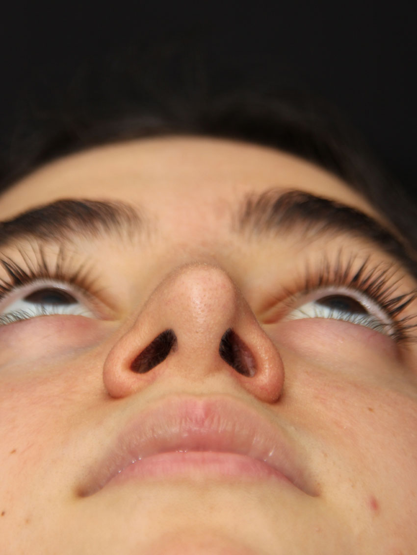 Reconstructive Septorhinoplasty performed to improve this patients airway, narrow the nasal tip and straighten her septum. The bottom view her nose demonstrates dramatic nasal tip reshaping and corection of a caudal deviation of the nasal septum.